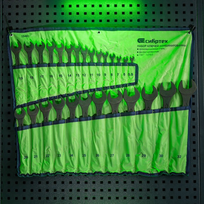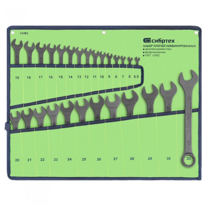 Набор ключей комбинированных, 5,5 - 32 мм, 27 шт., CrV, фосфатированные Сибртех (15481)