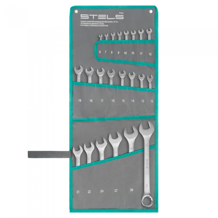 Набор ключей комбинированных 6-32 мм, 22 шт, CrV, матовый хром Stels (15423)