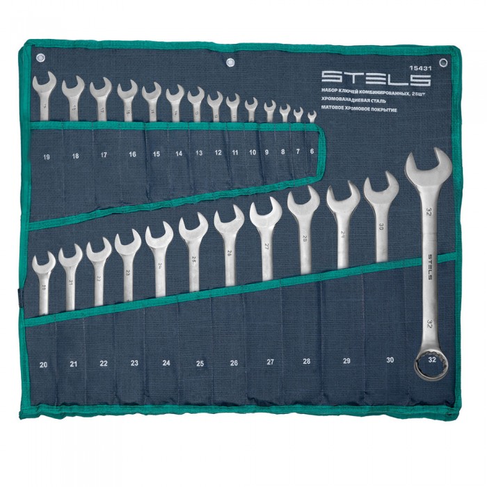 Набор ключей комбинированных 6-32 мм, 26 шт, CrV, матовый хром Stels