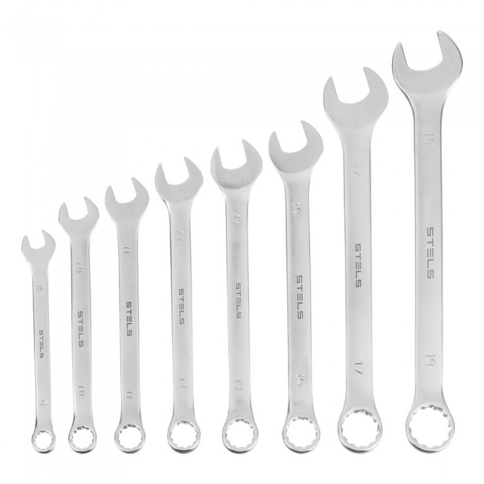 Набор ключей комбинированных, 8-19 мм, 8 шт, CrV, матовый хром Stels