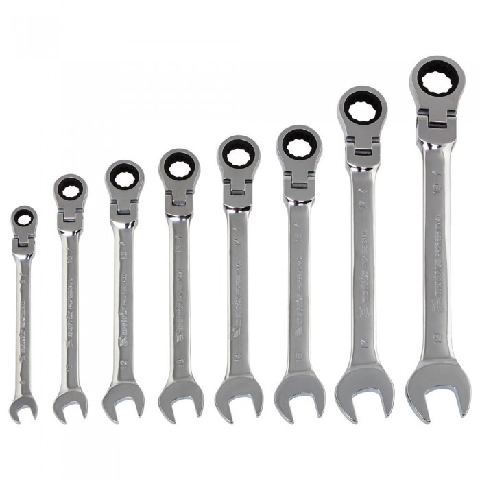 Набор ключей комбинированных, трещеточных шарнирных 8 шт Matrix