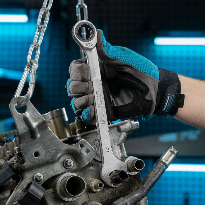 Набор ключей комбинированных трещоточных, количество зубьев 100, СRV, 7 шт, 8-19 мм Gross