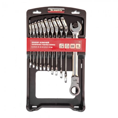 Набор ключей комбинированных, трещоточных шарнирных 11 шт. Matrix