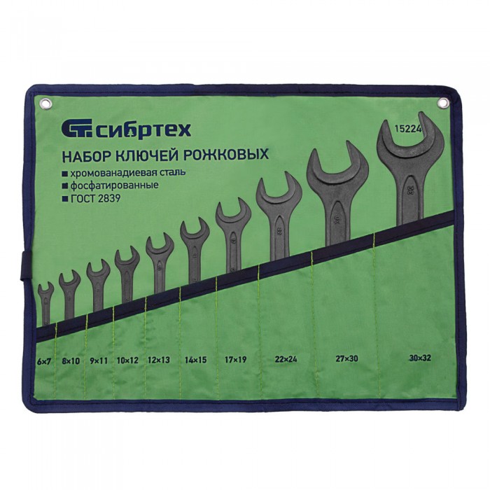 Набор ключей рожковых, 6 - 32 мм, 10 шт., CrV, фосфатированные Сибртех