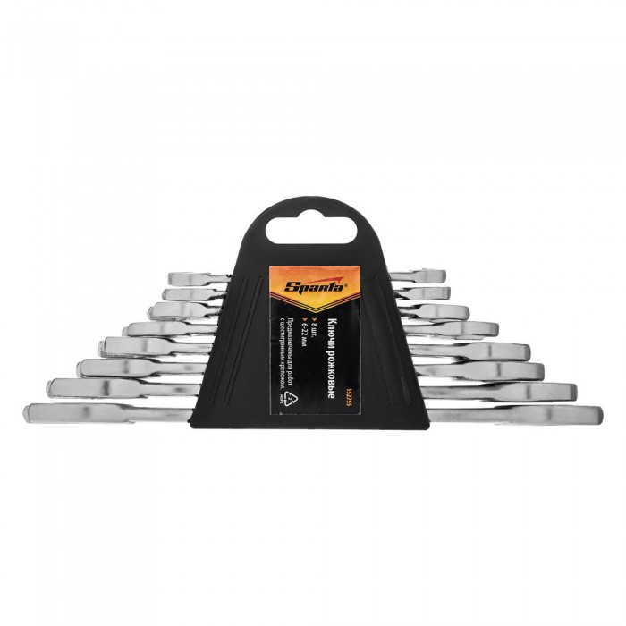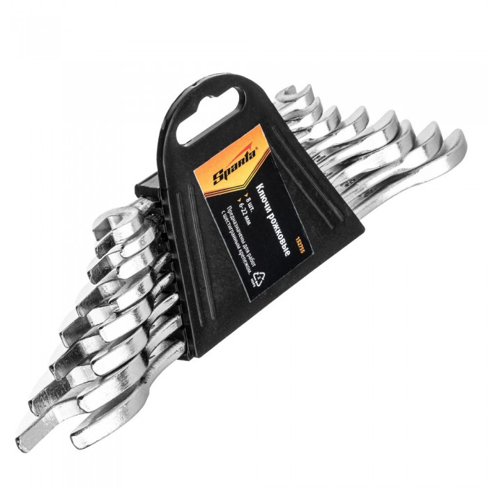 Набор ключей рожковых, 6 х 22 мм, 8 шт, хромированные Sparta
