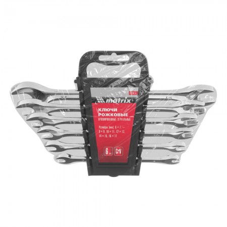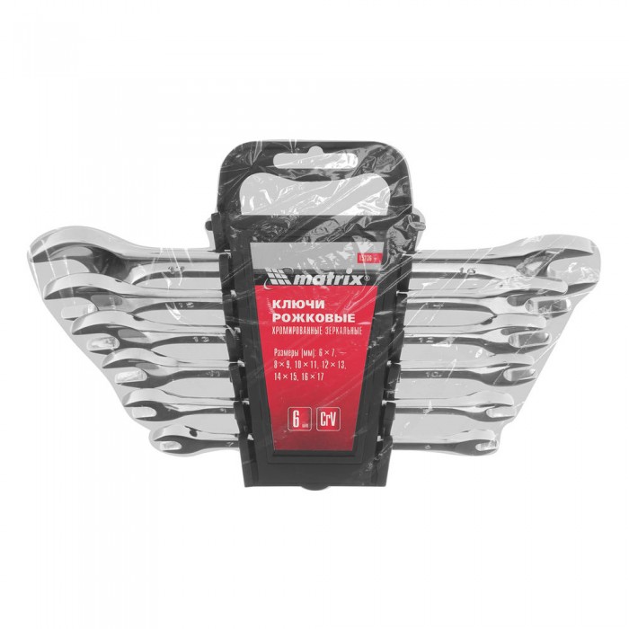 Набор ключей рожковых 6 шт, 6-17 мм, CrV, Elliptical, зеркальное хромирование Matrix