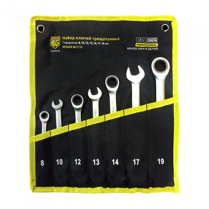 Набор ключей трещоточных комбинированных 7 предметов BERGER