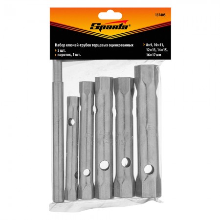 Набор ключей трубчатых торцевых, 8 х 17 мм, вороток, оцинкованные, 6 шт. Sparta (137405)