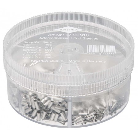 Набор неизолированных контактных гильз 0.5 мм? 500 шт 0.75 мм? 500 шт 1 мм? 400 шт 1.5 мм? 300 шт 2.5 мм? 200 шт KN-9799910