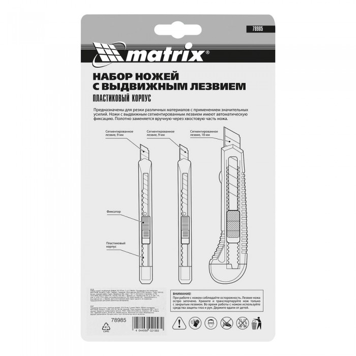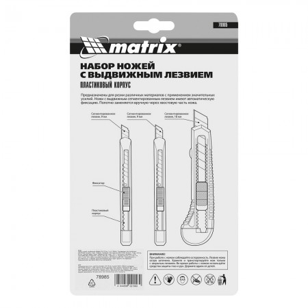 Набор ножей, выдвижные лезвия, 9-9-18 мм, 3 шт. Matrix (78985)