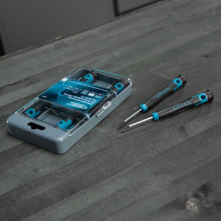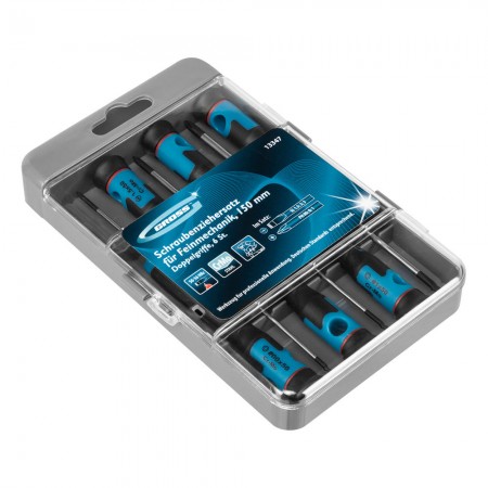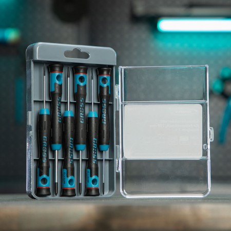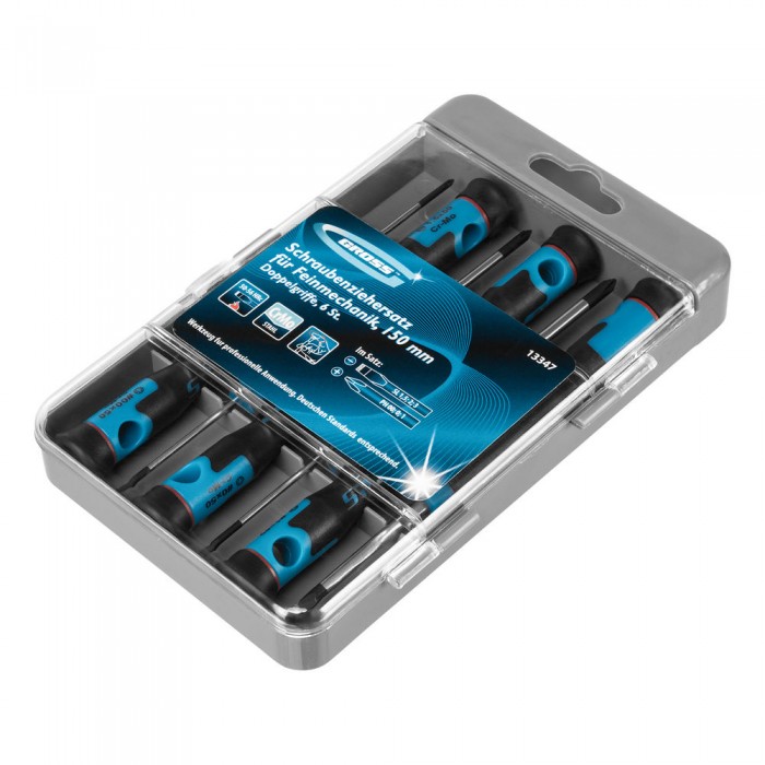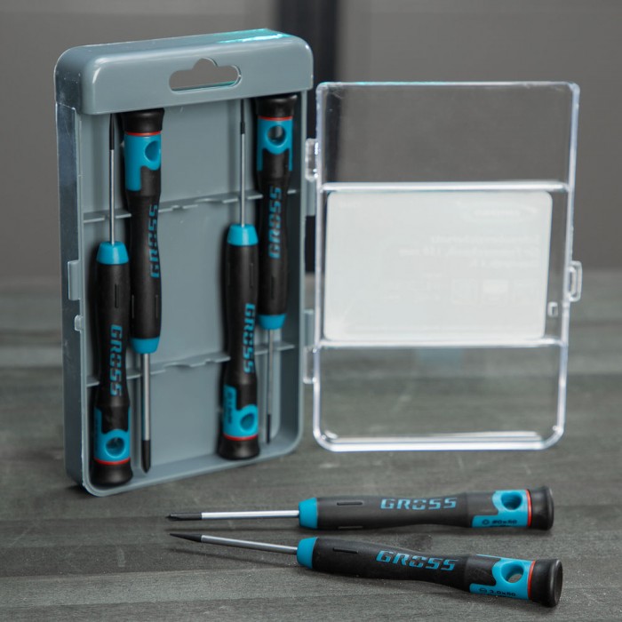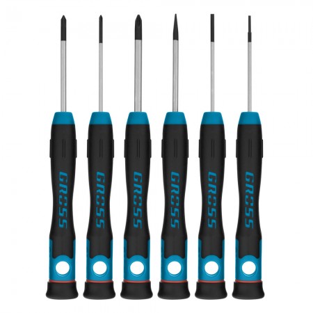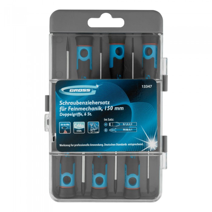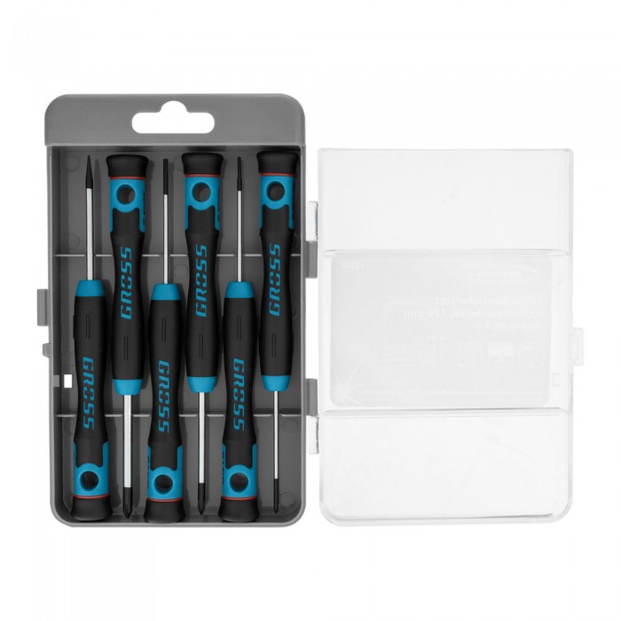Набор отверток для точной механики, CrMo, двухкомпонентные рукоятки, 6 шт, пластиковый бокс Gross (13347)