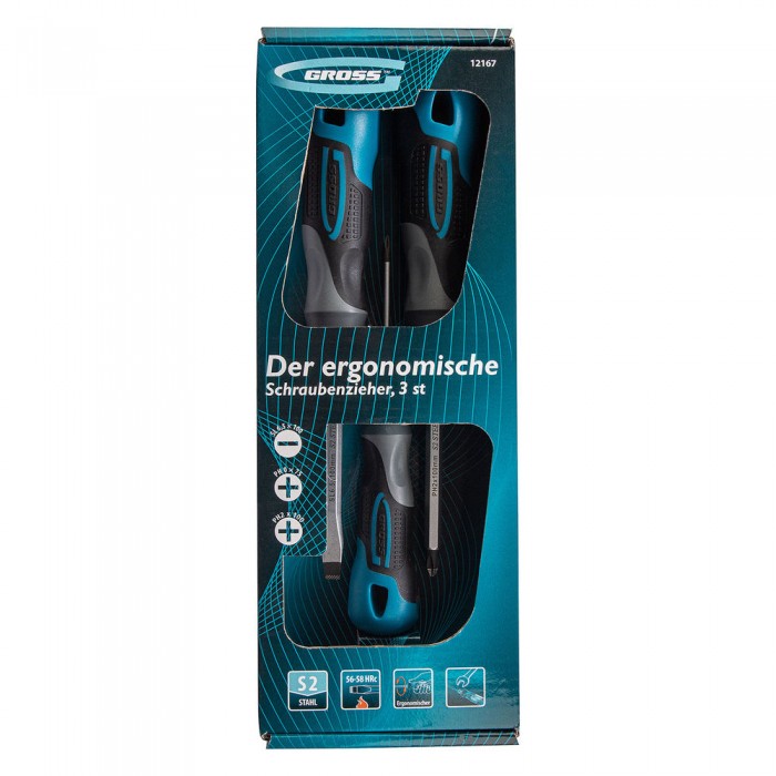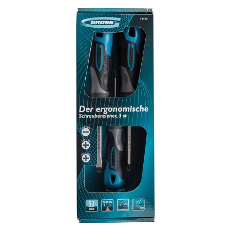 Набор отверток комбинированный 3 шт, S2, трехкомпонентная рукоятка Gross
