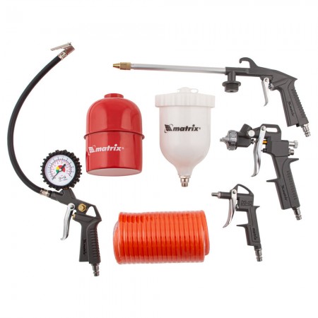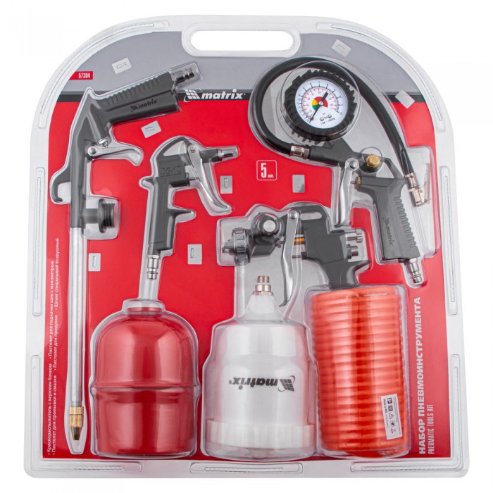 Набор пневмоинструмента, 5 предметов, быстросъемное соединение, краскораспылитель с верхним бачком Matrix (57304)