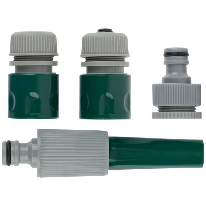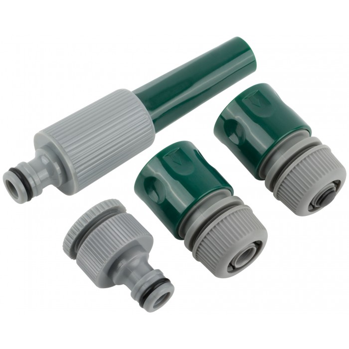 Набор поливочный 4 шт. (насадка для полива, соединитель, соединитель с автостопом, адаптер внешний). Материал: ABS пластик.