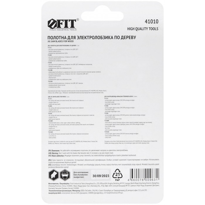 Набор полотен для электролобзика 5 шт. (T111C; T144D; T101B; T101BR; T101AO) (41010)