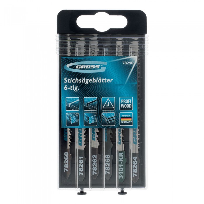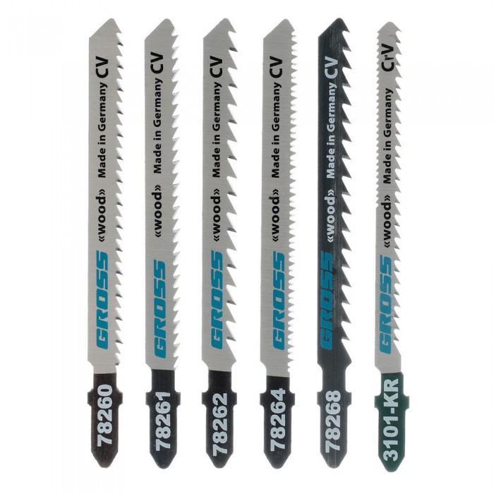 Набор полотен для электролобзика по дереву, 6 шт, Profi, пластиковый кейс Gross