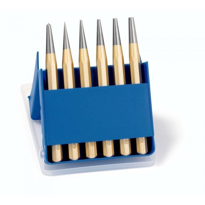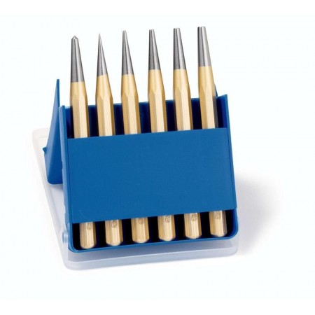 Набор пробойников DIN 6458, 6 пр., O 1/2/3/4/5 мм + Кернер DIN 7250 O 4 мм, 8-гран. профиль 10 мм, пластиковый кейс (RE-4241400)