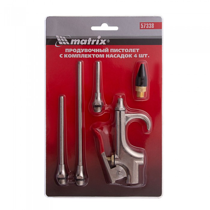 Набор продувочный пистолет, пневмат. в комплекте с насадками, 4 шт Matrix (57338)