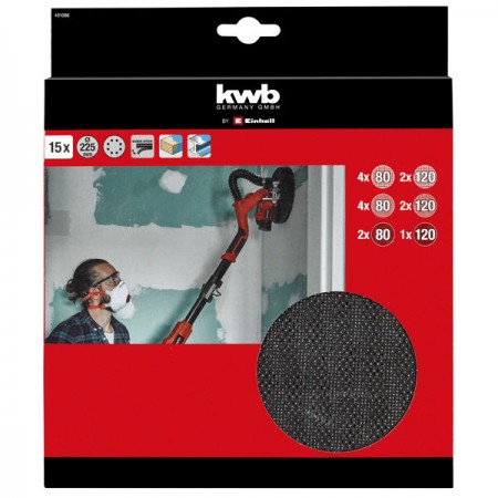 Набор шлифовальных сеток и шкурок 225 мм 15 предметов, сетки 4хР80, 2хР120,шкурки 6хР80,3хР120 (491066)