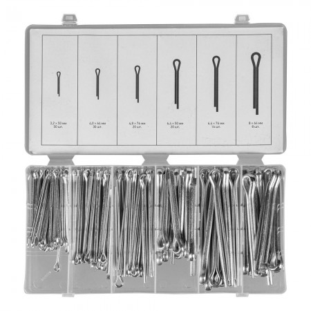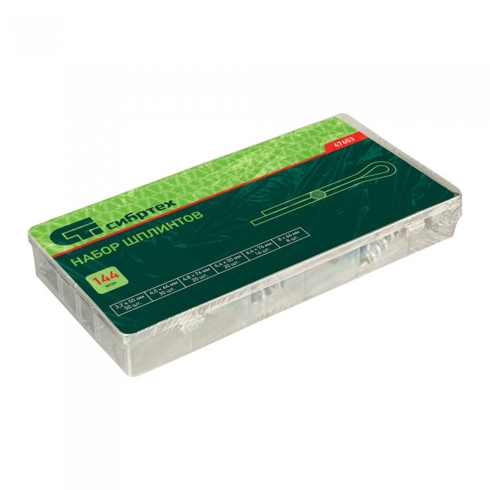 Набор шплинтов, S головки х L: 3.2 х 50.4 х 64, 4.8 х 76, 6, 4 х 25, 6, 4 х 76, 8 х 64 мм, 144 предмета Сибртех (47603)