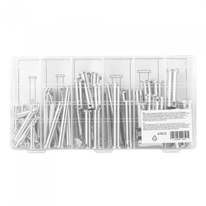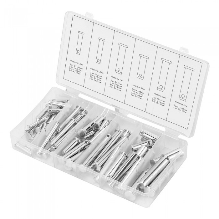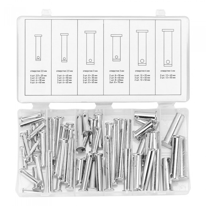 Набор штифтов с головкой и отверстием под шплинт, 60 предметов Сибртех (47612)