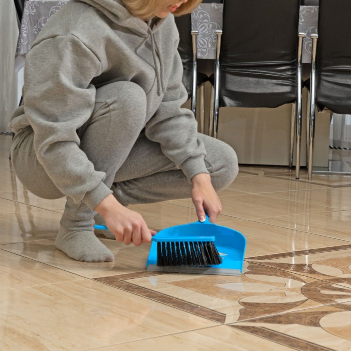 Набор: совок с кромкой 330 x 225 мм и щетка-сметка 285 мм, голубой, Home Palisad (933105)