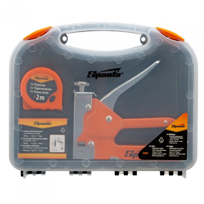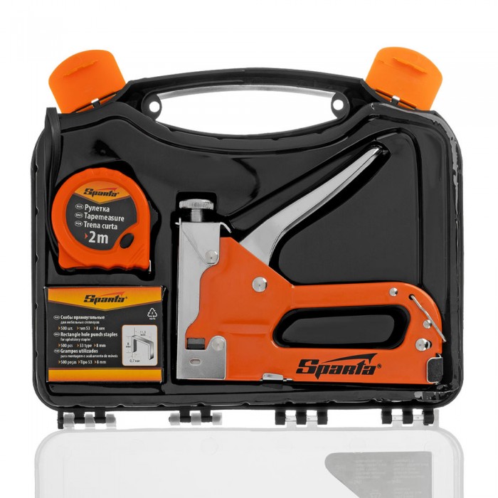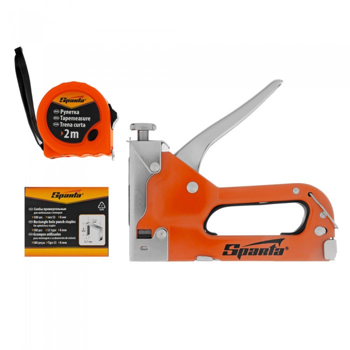 Набор: степлер мебельный регулируемый, скобы 500 шт, рулетка 2 м, тип скобы 53, 4-14 мм Sparta (42003)