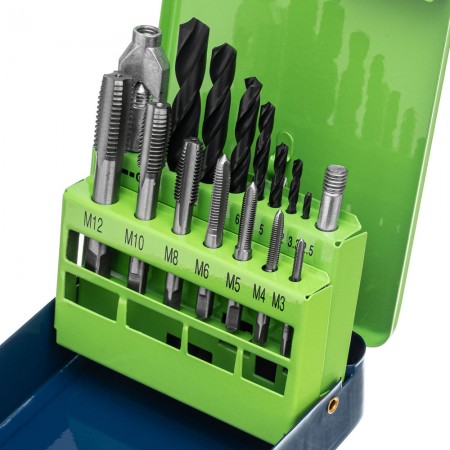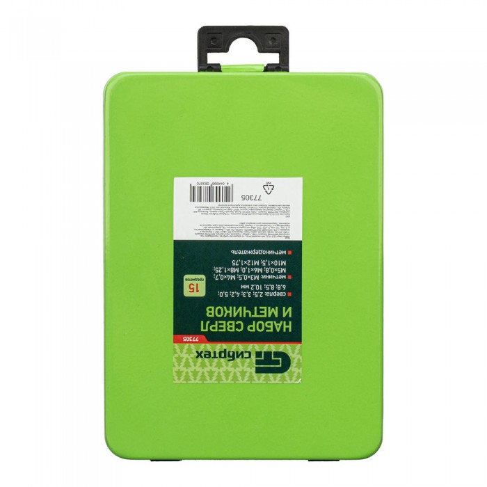 Набор сверл 2.5-10.2, метчиков М3-М12, 15 предметов Сибртех (77305)