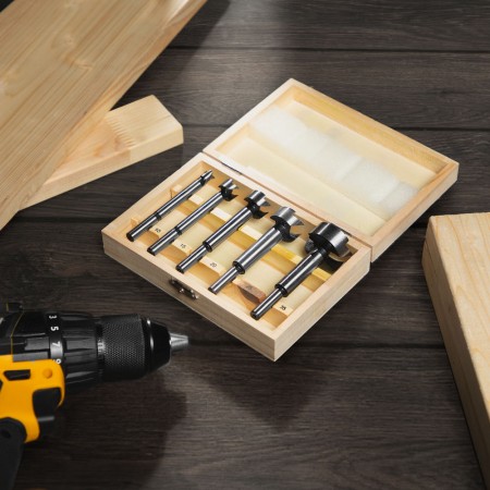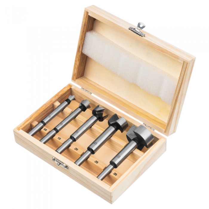 Набор сверл Форстнера по дереву, 10-15-20-25-35 мм, 5 шт, в деревянном боксе, цилиндрический хвостовик Sparta (704405)