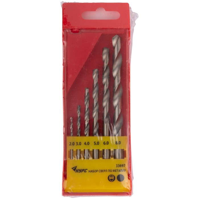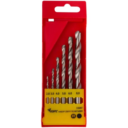 Набор сверл HSS по металлу полированных, 6 шт. (2-3-4-5-6-8 мм) (33697)