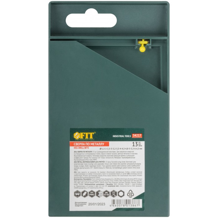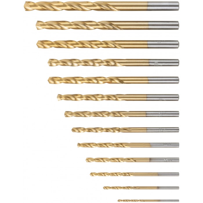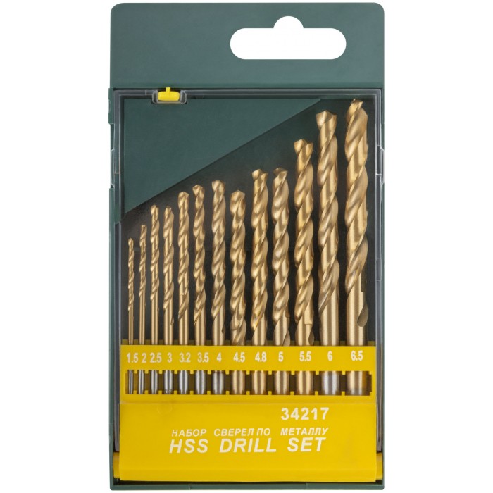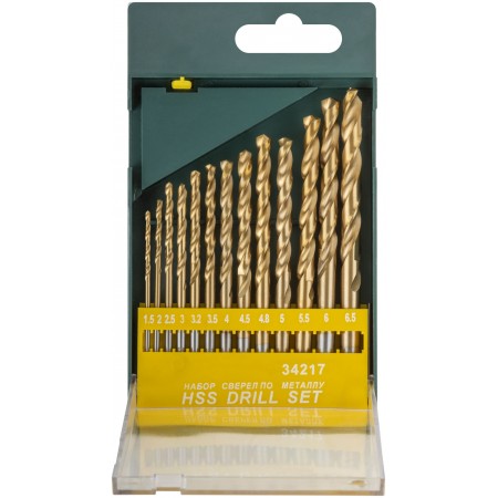 Набор сверл HSS по металлу, титановое покрытие, 13 шт. (1,5-2-2,5-3-3,2-3,5-4-4,5-4,8-5-5,5-6-6,5 мм) (34217)