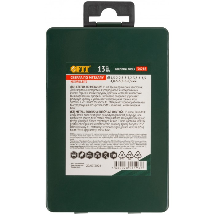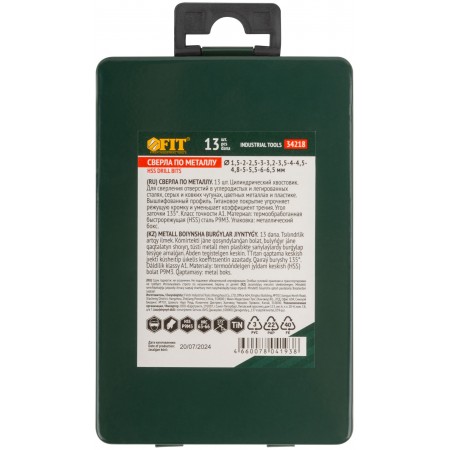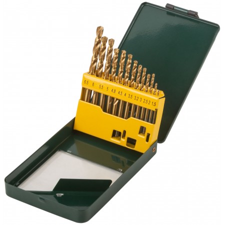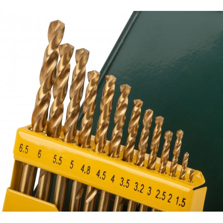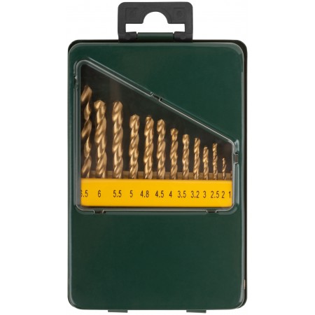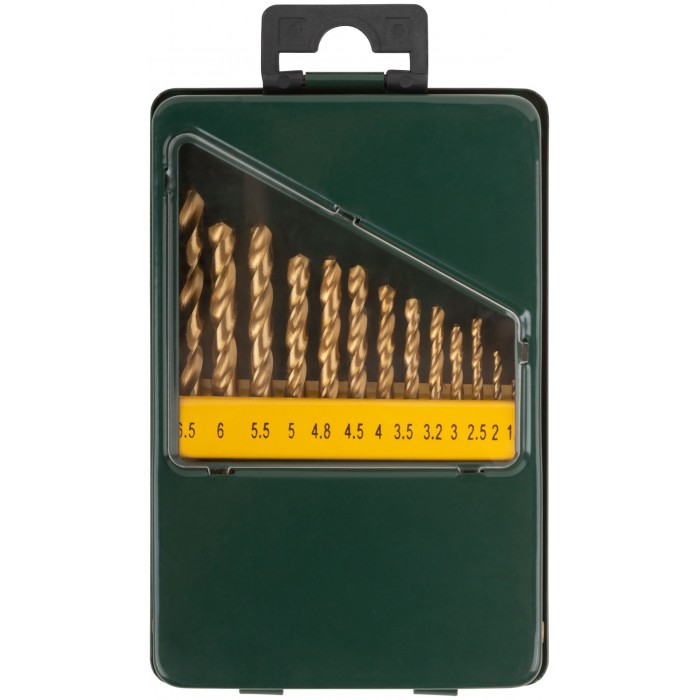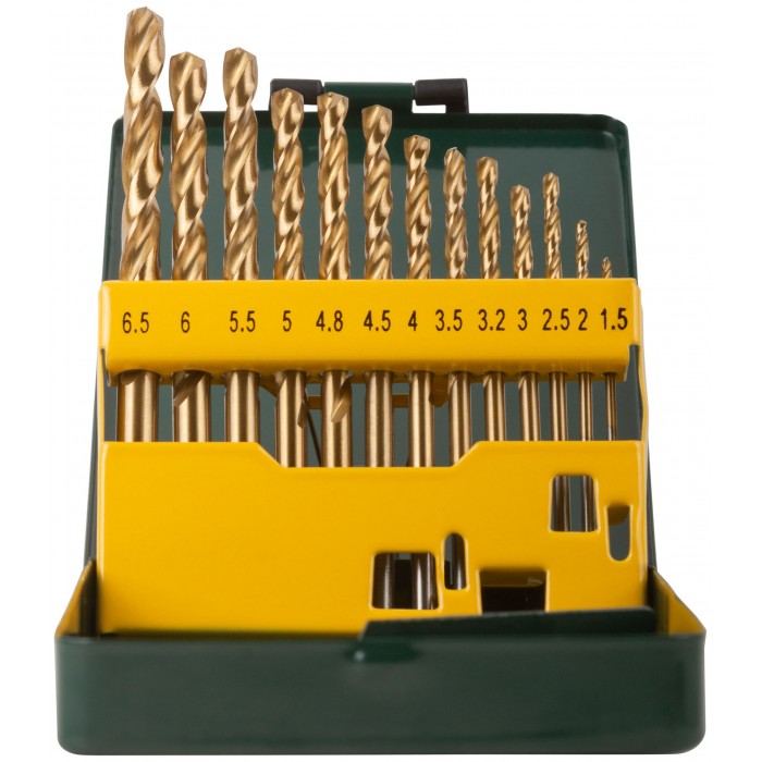 Набор сверл HSS по металлу, титановое покрытие, 13 шт. (1,5-6,5 мм), металлический бокс (34218)