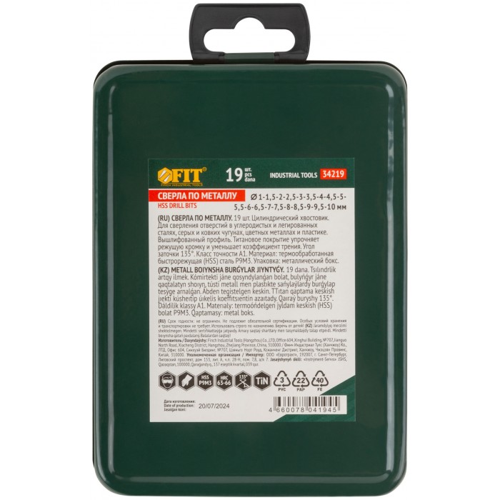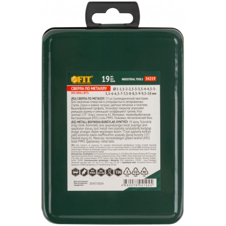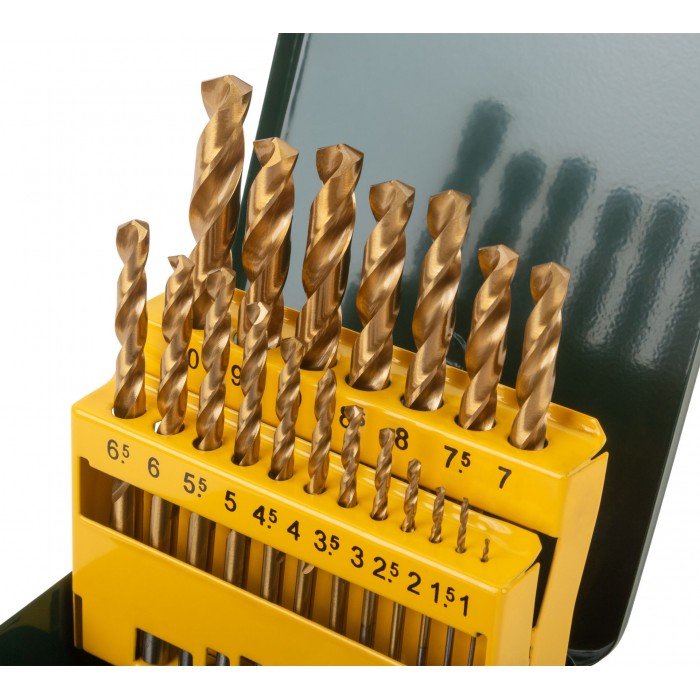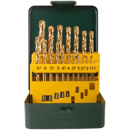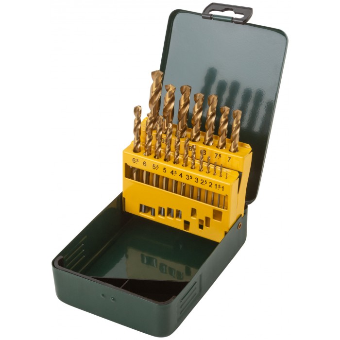 Набор сверл HSS по металлу, титановое покрытие, 19 шт. (1-10 мм), металлический бокс (34219)