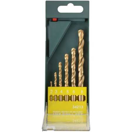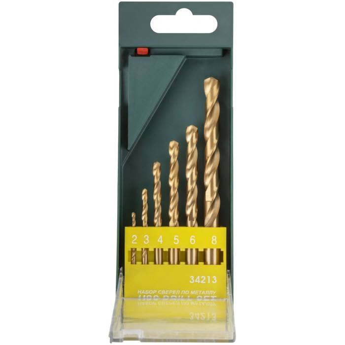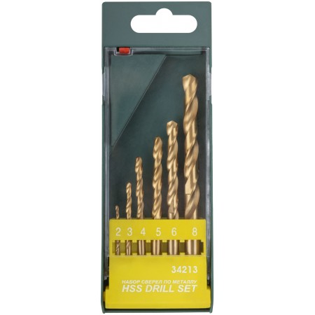 Набор сверл HSS по металлу, титановое покрытие, 6 шт. (2-3-4-5-6-8 мм) (34213)