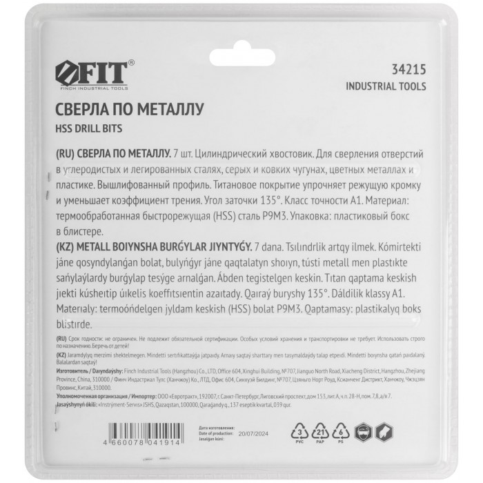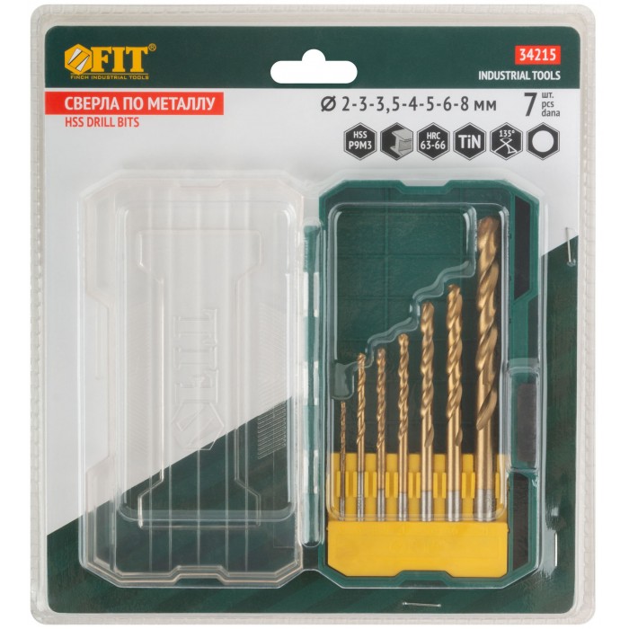 Набор сверл HSS по металлу, титановое покрытие, 7 шт. (2-3-3,5-4-5-6-8 мм) (34215)