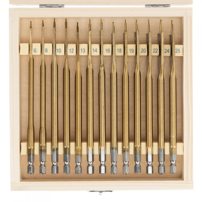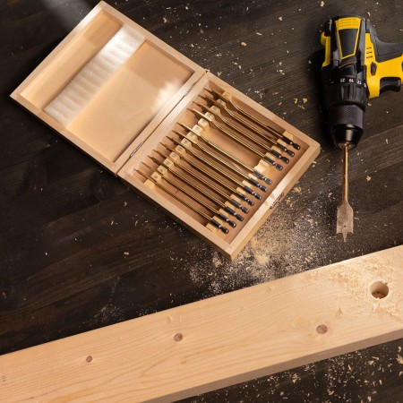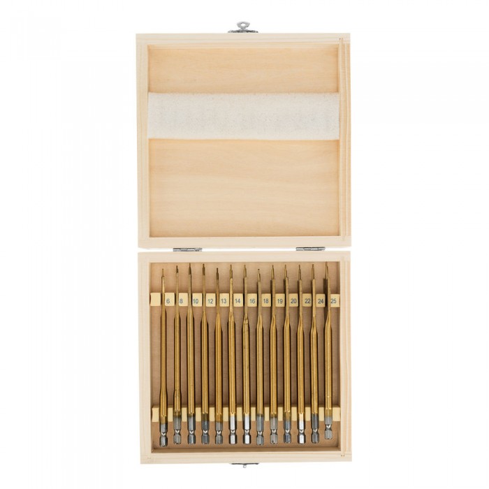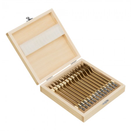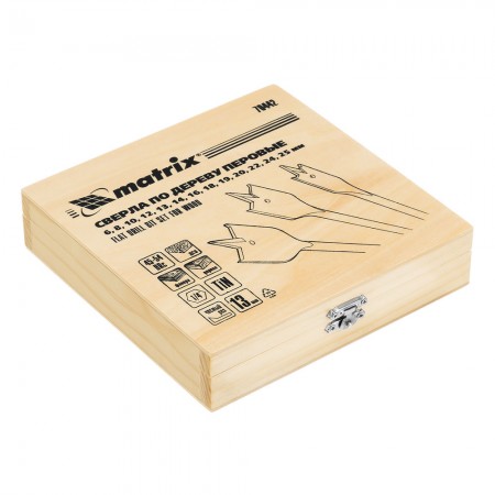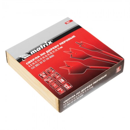 Набор сверл перовых по дереву, 6-8-10-12-13-14-16-18-19-20-22-24-25 мм, 13 шт, деревянный кейс Matrix (70442)