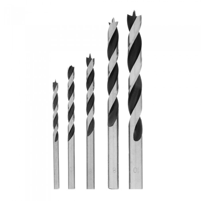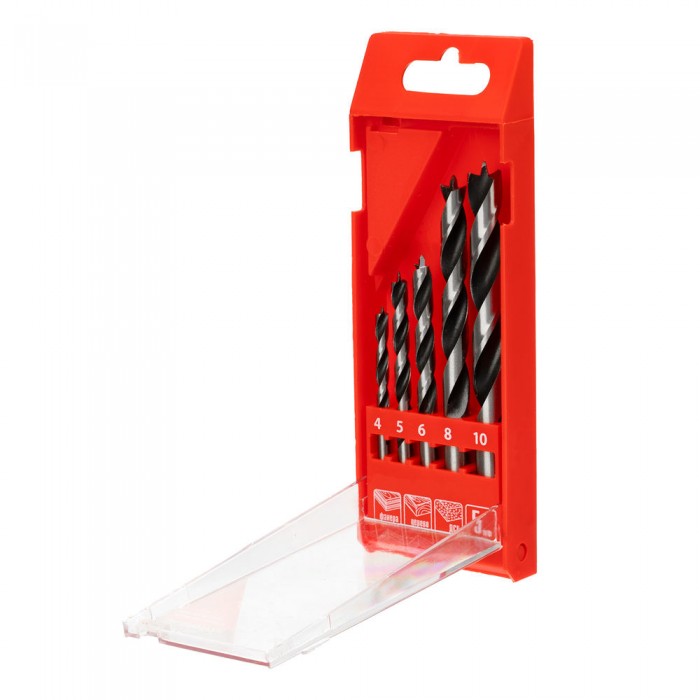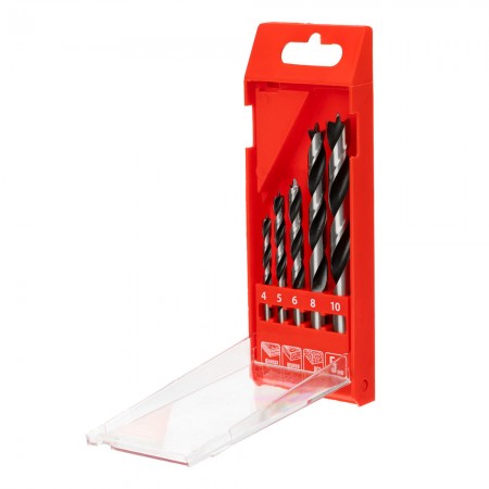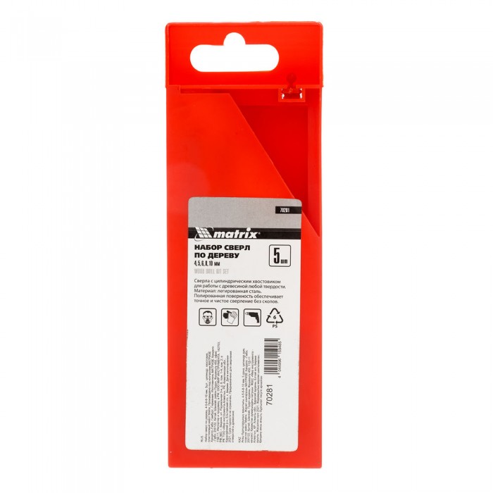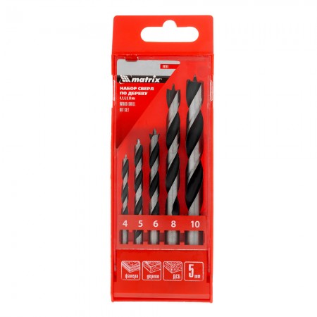 Набор сверл по дереву, 4-5-6-8-10 мм, 5 шт, цилиндрический хвостовиковик, пластиковый кейс, Matrix (70281)