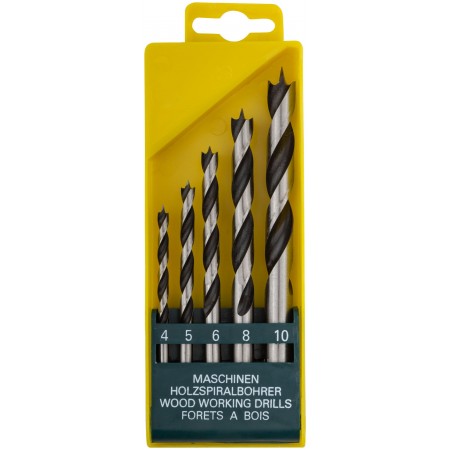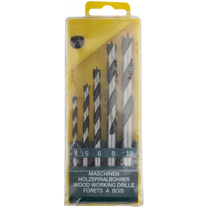 Набор сверл по дереву, CrV Профи, пластиковый бокс, 5 шт. (4-5-6-8-10 мм) (36099)