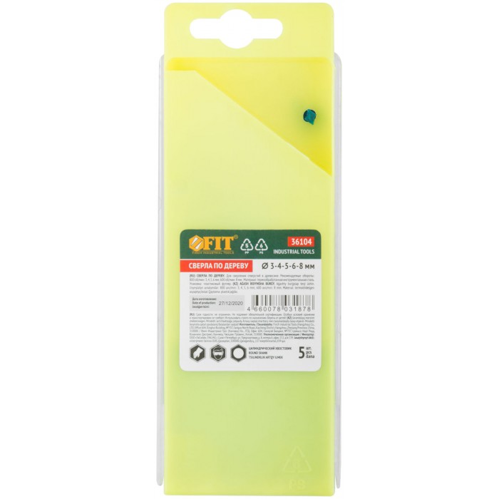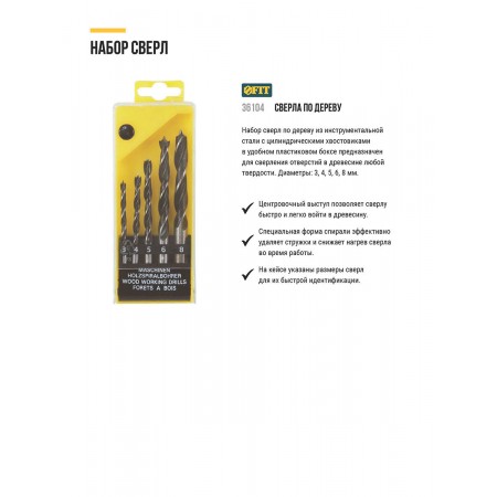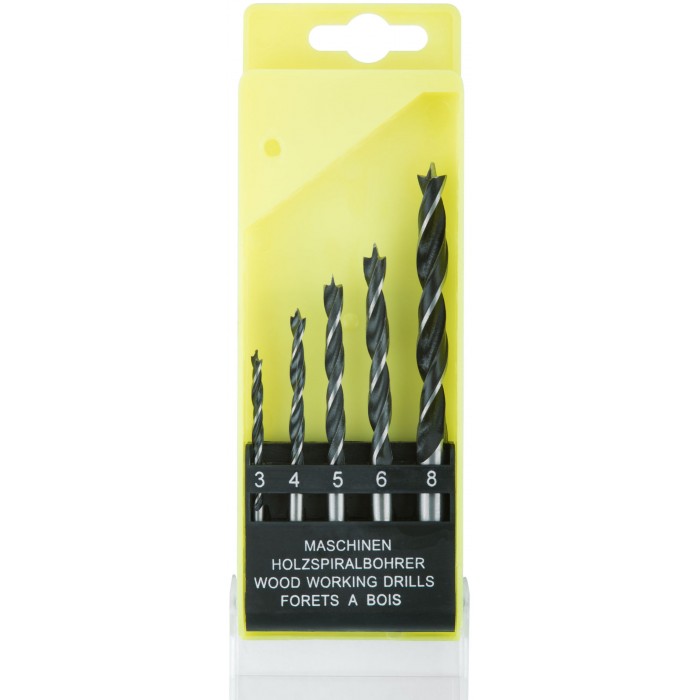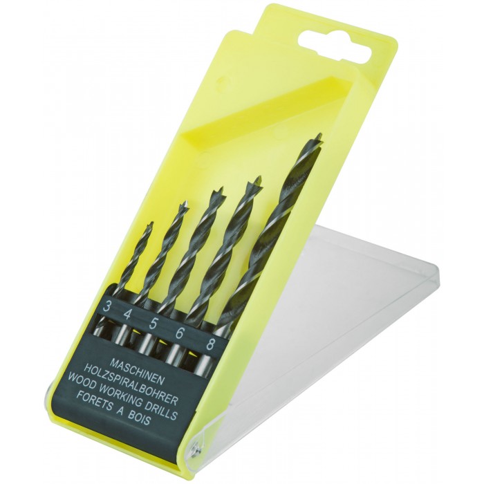 Набор сверл по дереву, пластиковый бокс, 5 шт.(3-4-5-6-8 мм) (36104)