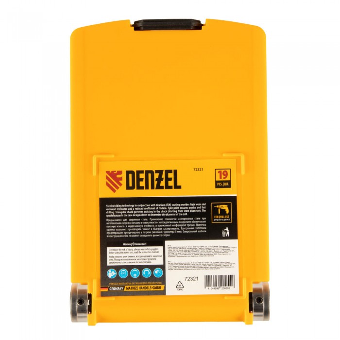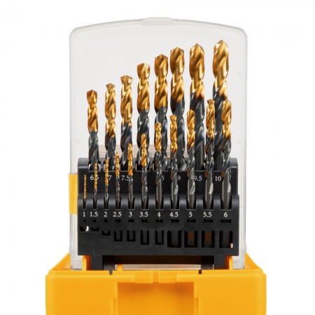 Набор сверл по металлу, 1-10 мм, HSS-Tin, Golden Tip, 19 шт Denzel (72321)