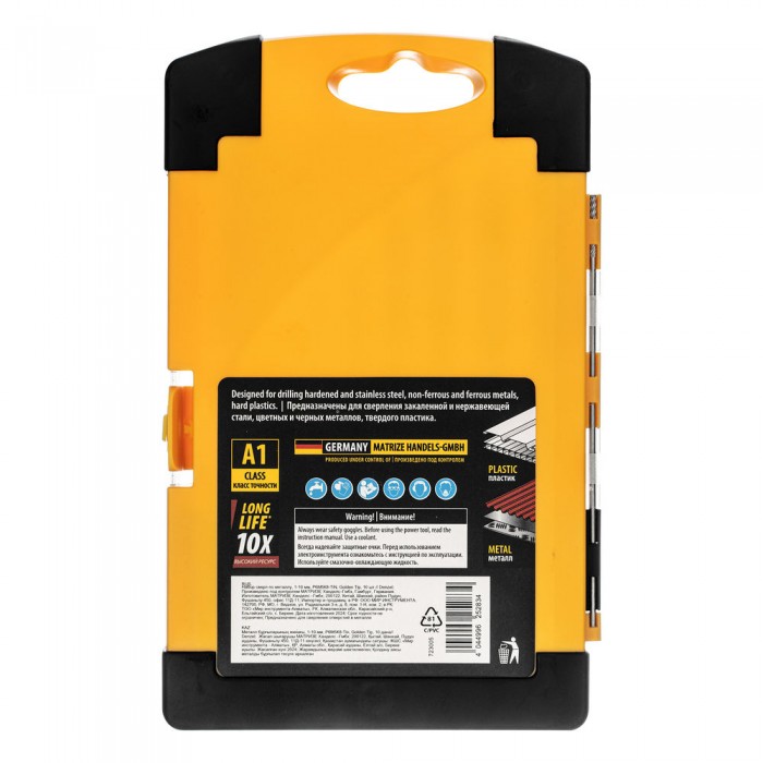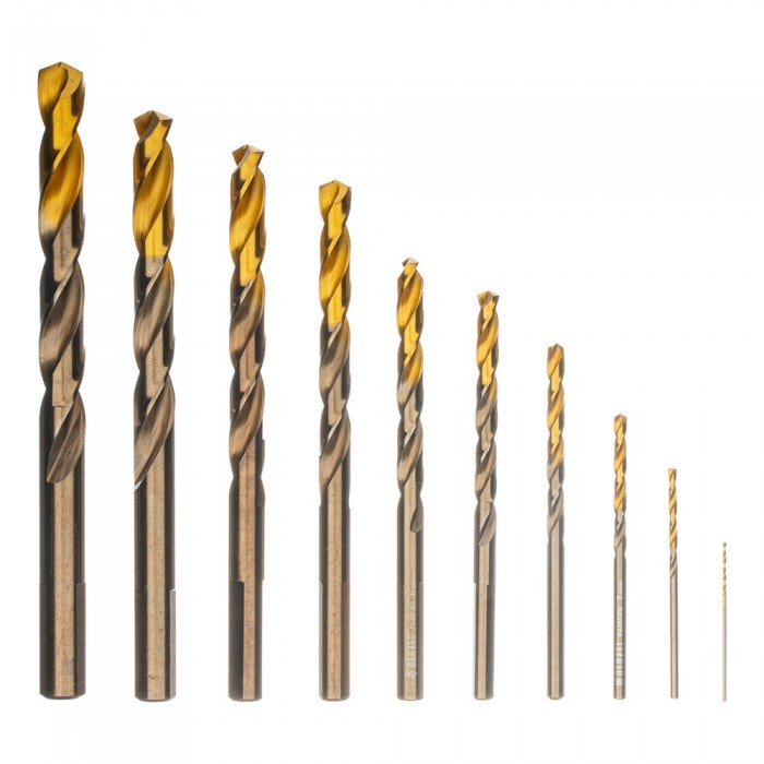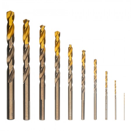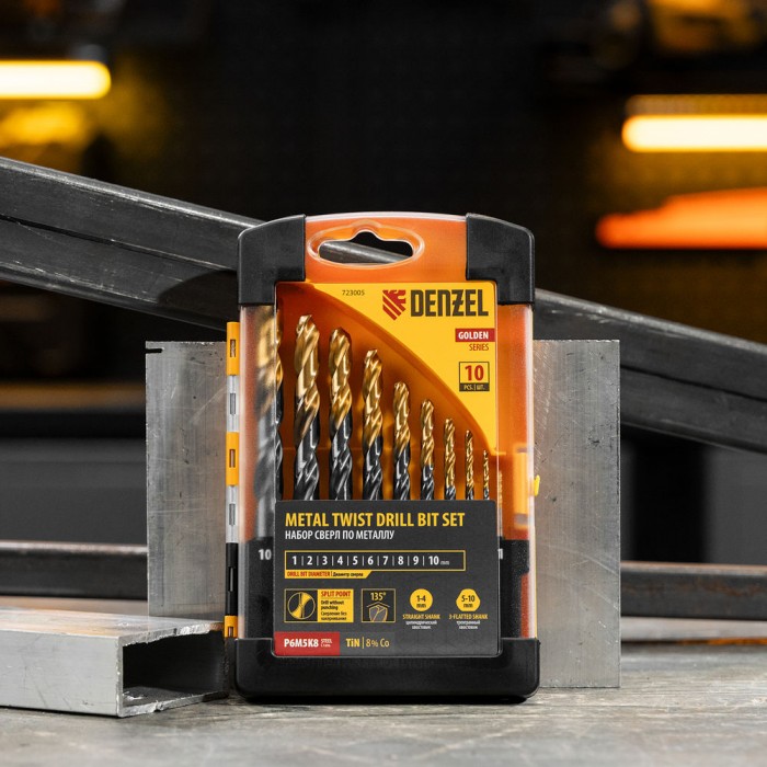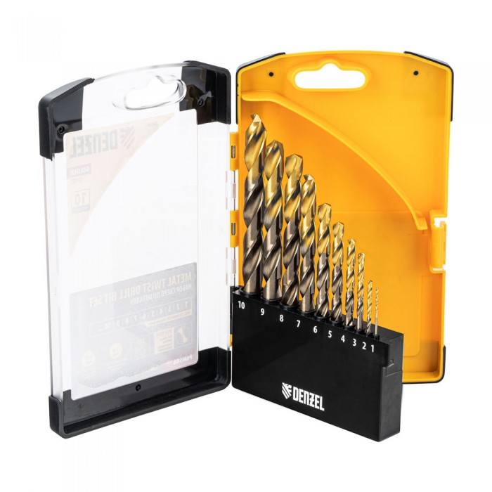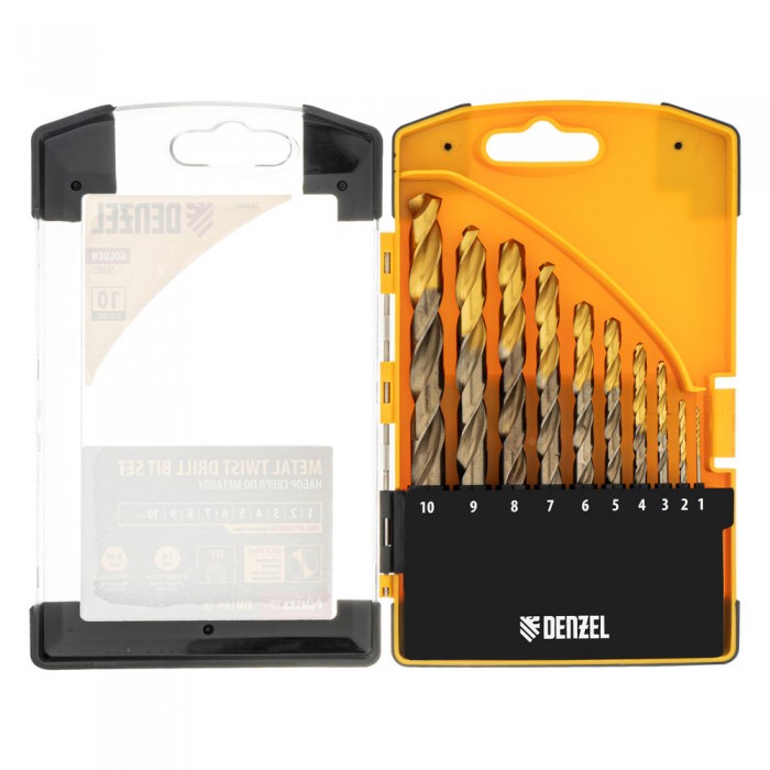 Набор сверл по металлу, 1-10 мм, Р6М5К8-TiN, Golden Tip, 10 шт Denzel (723005)