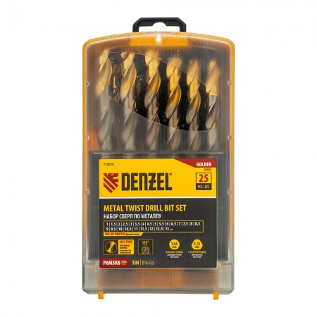 Набор сверл по металлу, 1-13 мм, Р6М5К8-TiN, Golden Tip, 25 шт Denzel (723010)