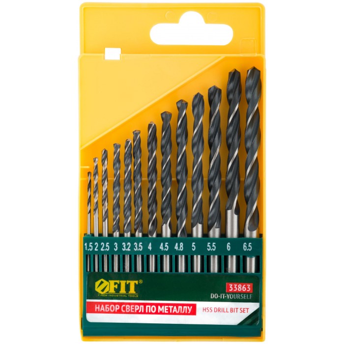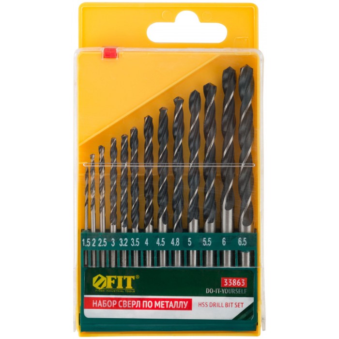 Набор сверл по металлу HSS черненых, 13 шт. (1,5-2-2,5-3-3,2-3,5-4-4,5-4,8-5-5,5-6-6,5 мм) (33863)