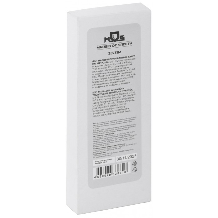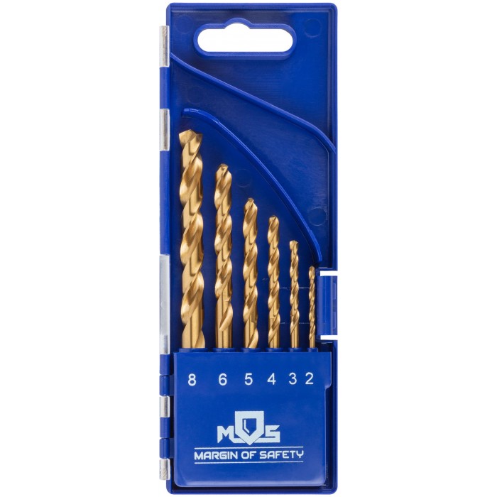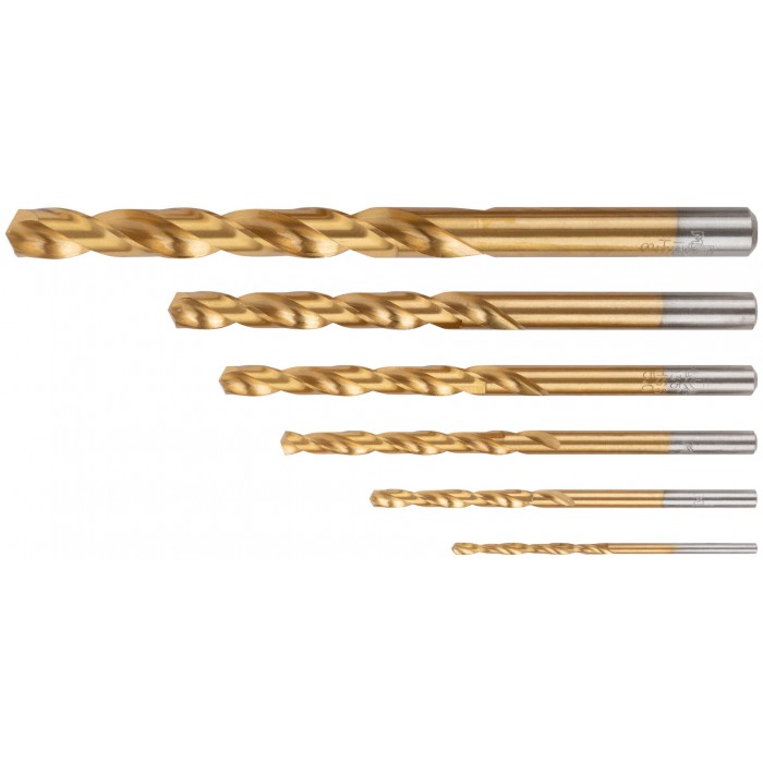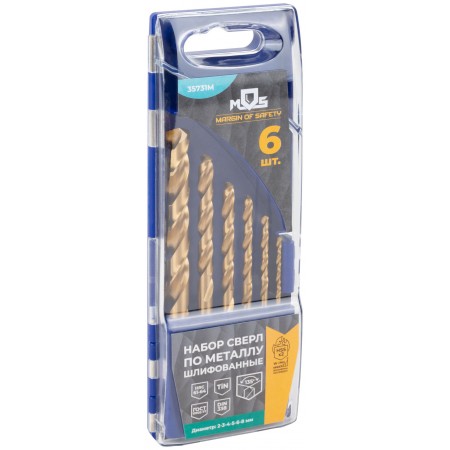 Набор сверл по металлу HSS шлифованные, титановое покрытие, угол заточки 135°, пласт. кейс, 6 шт. (2-3-4-5-6-8 мм) (35731М)