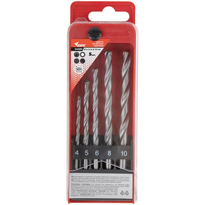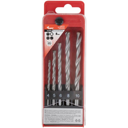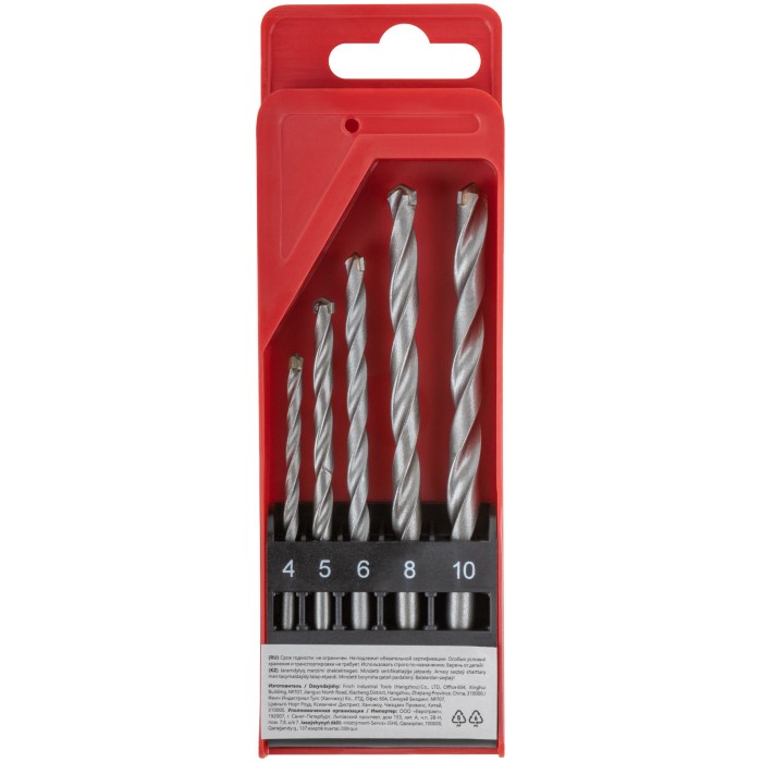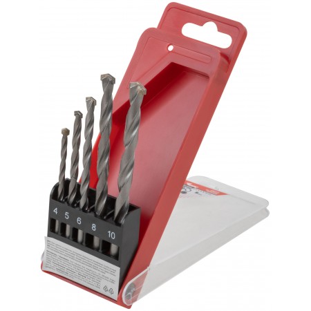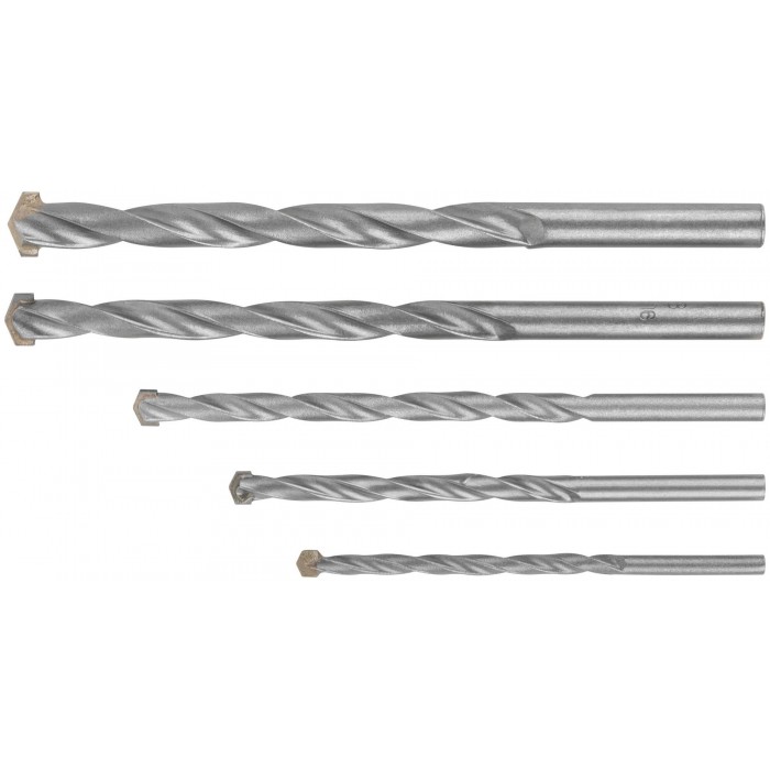 Набор сверл победитовых ударных, цилиндрический хвостовик, 5 шт. (4-5-6-8-10 мм) (34580)