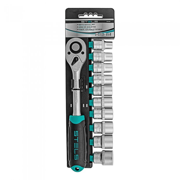 Набор торцевых головок, 1/2", головки 10 - 22 мм, с трещот. ключом, CrV,11 предметов Stels