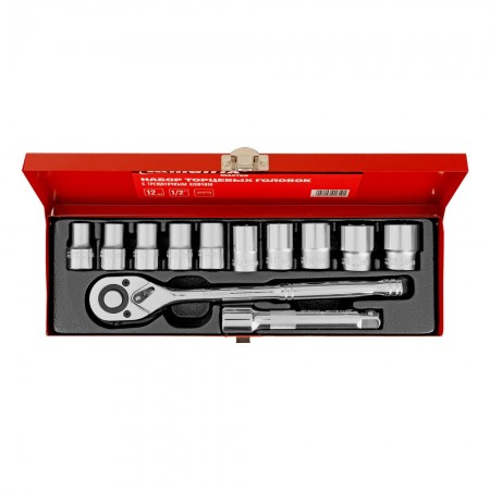 Набор торцевых головок, 1/2", головки 10 - 24 мм, с трещот. ключом, 12 предметов Matrix