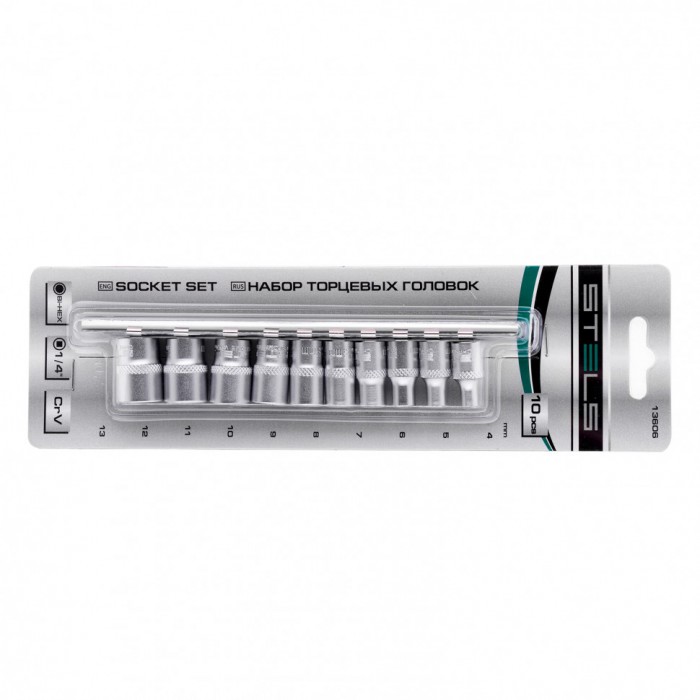 Набор торцевых головок, 1/4, двенадцатигранные, CrV, 10 шт, 4-13 мм Stels