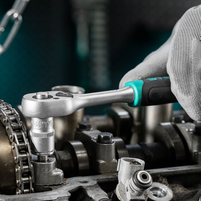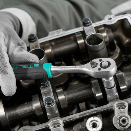 Набор торцевых головок, 1/4", головки 4 - 13 мм, с трещот. ключом, CrV,11 предметов Stels