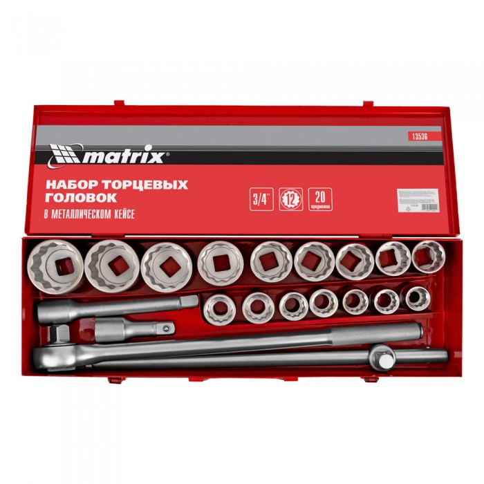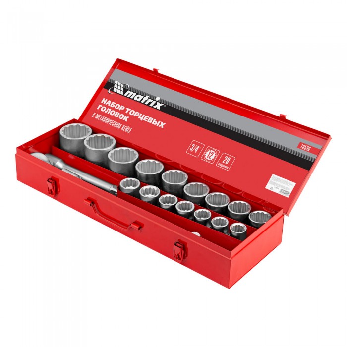Набор торцевых головок 3/4", головки 19 х 50 мм, 20 предметов, в метал. боксе Matrix